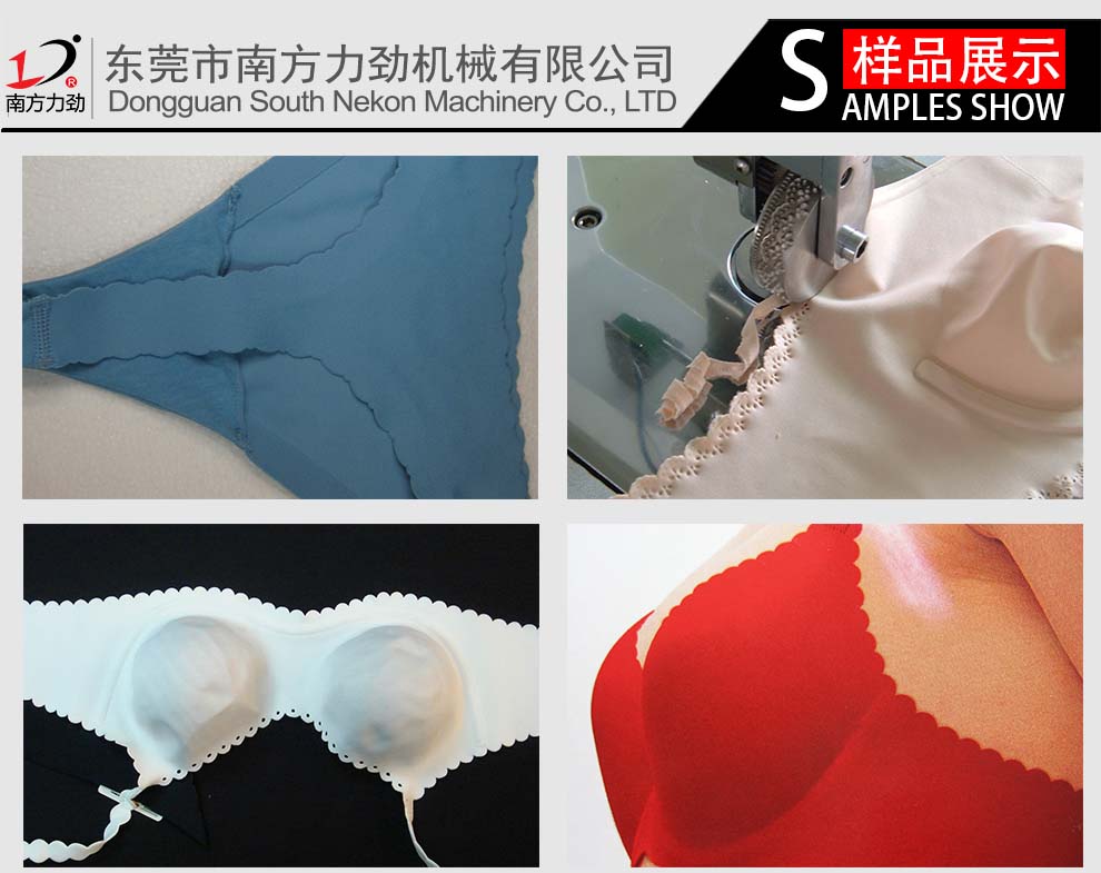 超聲波內衣機是將超聲波運用在內衣產品上,通過超聲波花輪對內衣的周邊進行切邊,壓各式暗紋或壓各式花孔,并能對邊緣或不同規則花形孔狀進行熔邊處理,熔切邊柔軟、不脫絲,不破口,不損壞材料,不散邊,不損壞內衣材料原有的特性,花邊形狀隨意可變,使其周邊平滑具有彈性可準確表達女性的內在感受與外在氣質.
