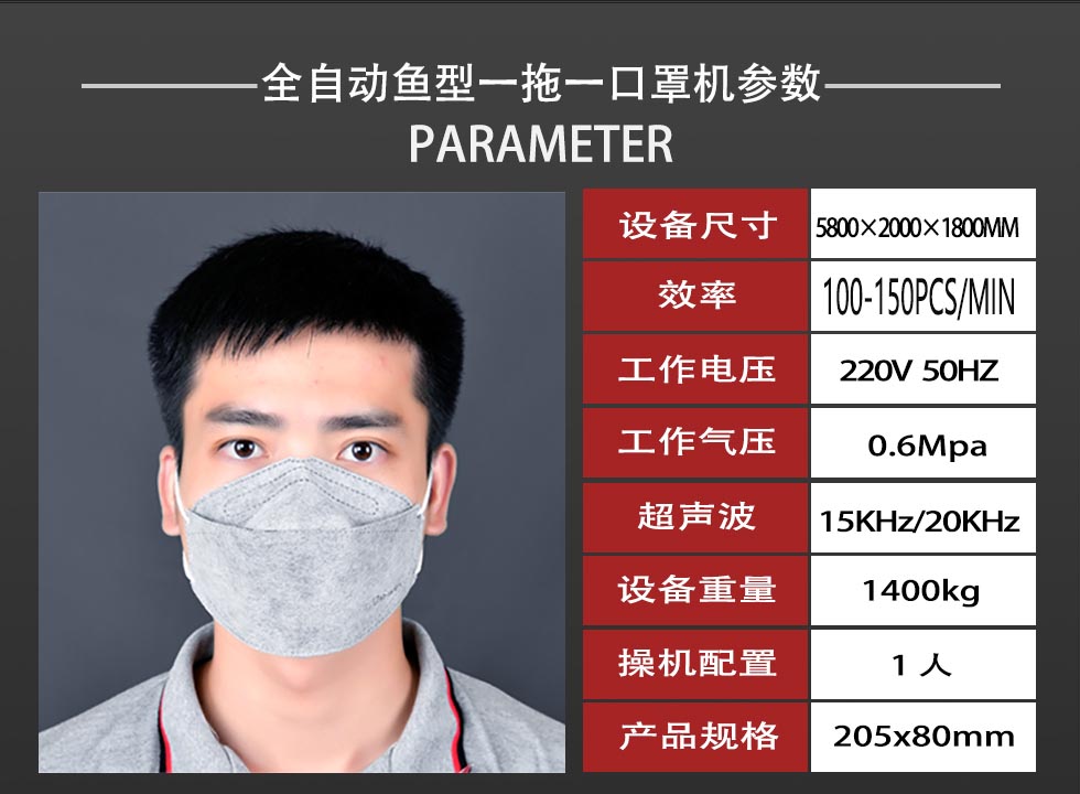南方力勁2020年全新升級的KF94高速魚型口罩機,日產能可達10萬個,機器穩定高效,所生產的魚型口罩外觀精致,深受廣大消費者的喜愛,魚型口罩生產機器亦獲得廣大口罩生產廠家的青睞。