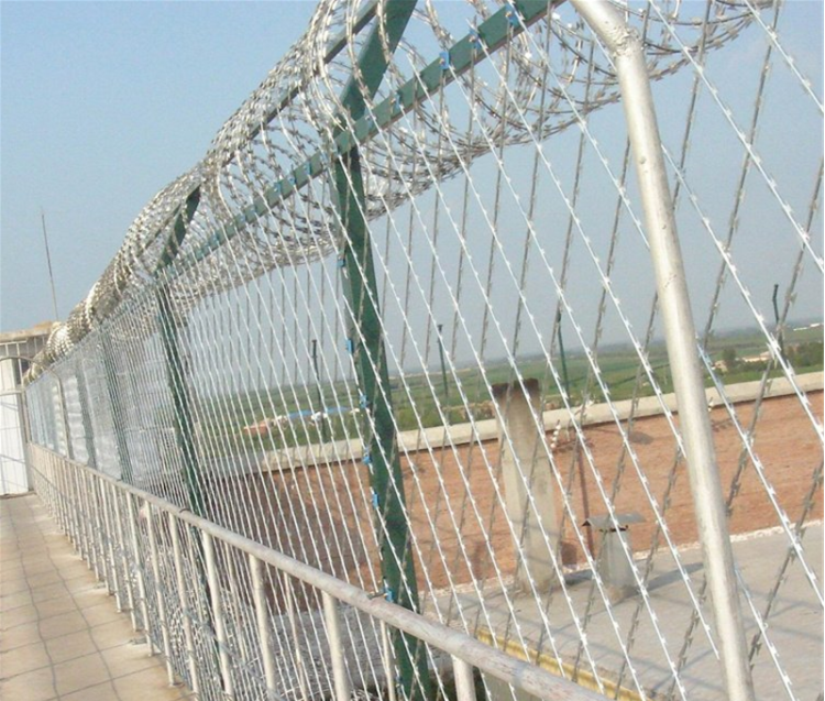 看守所刀刺圍墻網(wǎng)和鋼網(wǎng)墻、刀刺隔離網(wǎng)都是一樣的,為四防一體化做貢獻。近幾年全國的看守所巡邏道圍墻網(wǎng)都在改造。選用刀刺為網(wǎng)身更加安全,今年我公司所做巡邏道隔離網(wǎng)大部分都是304不銹鋼材質(zhì)的刀刺圍墻網(wǎng),通過客戶使用原材料可以看出,監(jiān)管部門對金屬鋼網(wǎng)的要求越來越高。