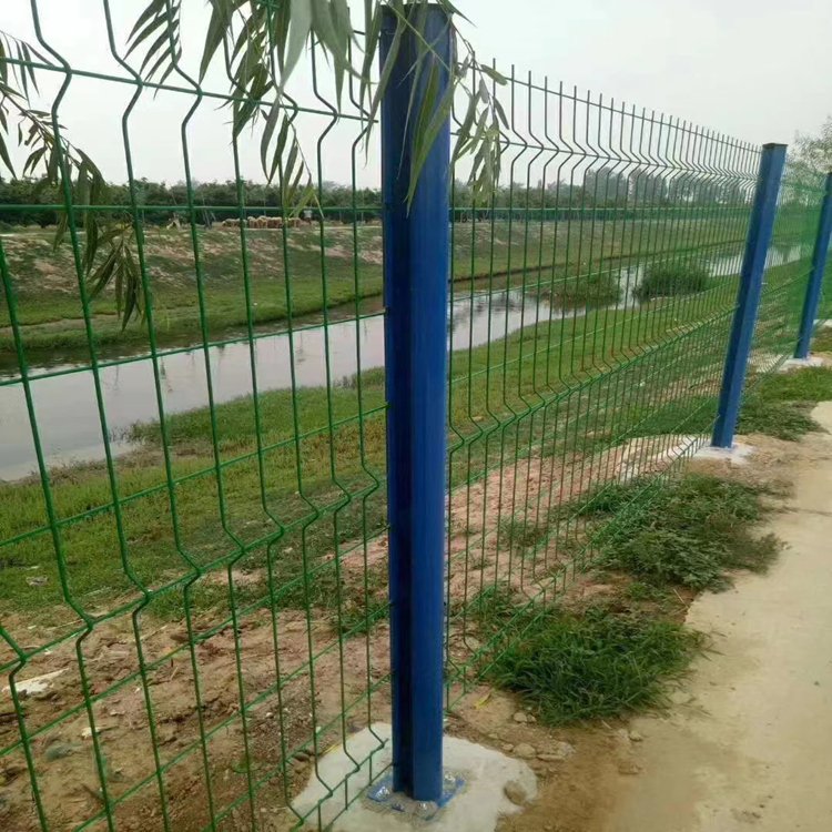 桃型柱護欄網表面處理有三種形式:鍍鋅、噴塑和浸塑。通過三種表面處理,更加突出了桃形立柱美觀、大方,具有一定的裝飾作用,更為重要的是延長了柱體的使用壽命,保證了10年不腐不朽的特點一般桃形立柱的板材厚度為1-1.2mm ,通過機器冷壓、冷彎成型。柱體外側為橢圓型,內側兩板相接后均各自向外彎制成U型,即為掛鉤部分。為便于桃型立柱與網片的連接,立柱內側根據網片的網孔尺寸,延立柱長度方向均勻的設置N組鉤掛缺口分布于柱體兩側,掛鉤U型的外部與外側的橢圓形柱體的直邊相切,有效地防止被撬開,保證了護欄的防撬安全性能。