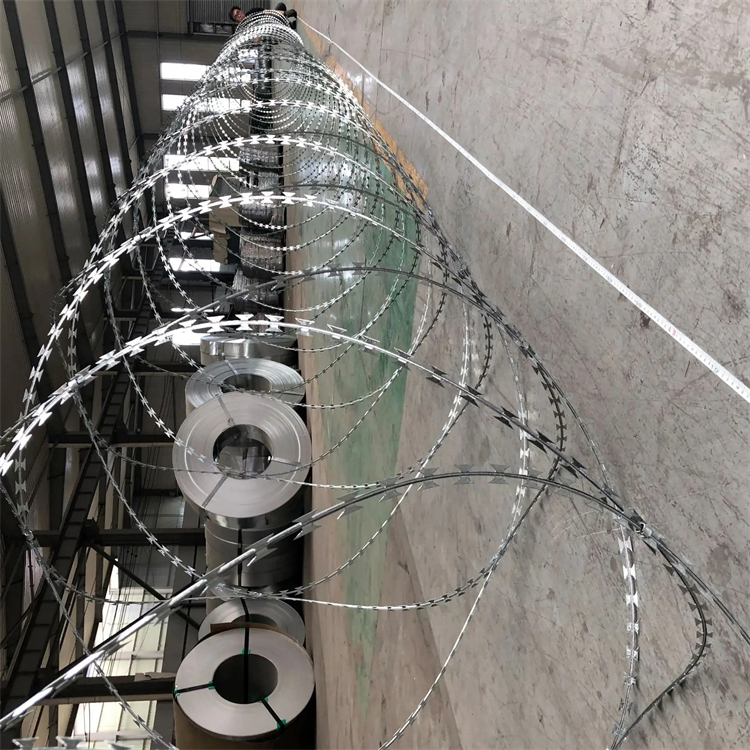 刀片刺繩一般用于監獄做防護用,因刀片鋒利不易觸摸,起到一定的嚇阻作用那個,刀片刺繩,用