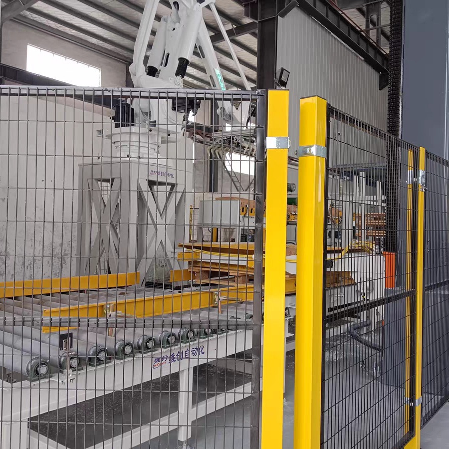 機(jī)器人安全圍欄一般使用4040鋁型材和4545鋁型材 ,圍欄成片安裝,包括型材、網(wǎng)板、連接配件、杯型地腳、裝飾件。圍欄門分單開門、雙開門、移門。一般根據(jù)客戶或場地需求制定效果圖,確認(rèn)尺寸,進(jìn)行加工制作。