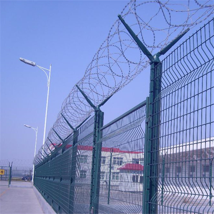 監(jiān)獄鋼網(wǎng)墻又稱作“Y型安全防御護(hù)網(wǎng)”,是由V型支架立柱,加強(qiáng)型焊接片網(wǎng),安全防盜連接件和熱鍍鋅刀片刺籠組成強(qiáng)度和安全防御性級(jí)別很高。近年來(lái),被廣泛應(yīng)用在監(jiān)獄,軍事基地等高安全場(chǎng)所。在監(jiān)獄鋼網(wǎng)墻頂部加裝刀片剌絲、刀片剌繩后又很好的增強(qiáng)了安全防護(hù)性能。采用電鍍、熱鍍、噴塑、浸塑等防腐形式,具有很好的抗老化抗曬、耐候等特點(diǎn)。產(chǎn)品造型美觀、花色多樣,既起到圍欄作用,又起到美化作用。由于具有安全性高、防攀爬能力好網(wǎng)片連接方式采用特制sbs緊扣件,有效防止人為的破壞性拆卸橫向四道折彎加強(qiáng)筋,使網(wǎng)面強(qiáng)度顯著增加。