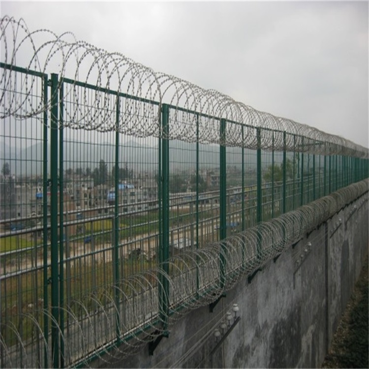 搭配使用。V型支架的加裝是為了將蛇腹形刀刺網固定在鋼網墻頂部,從而有效的增加監獄看守所鋼網墻的防攀爬性和安全性。V型支架加裝防拆卸刀刺網。
