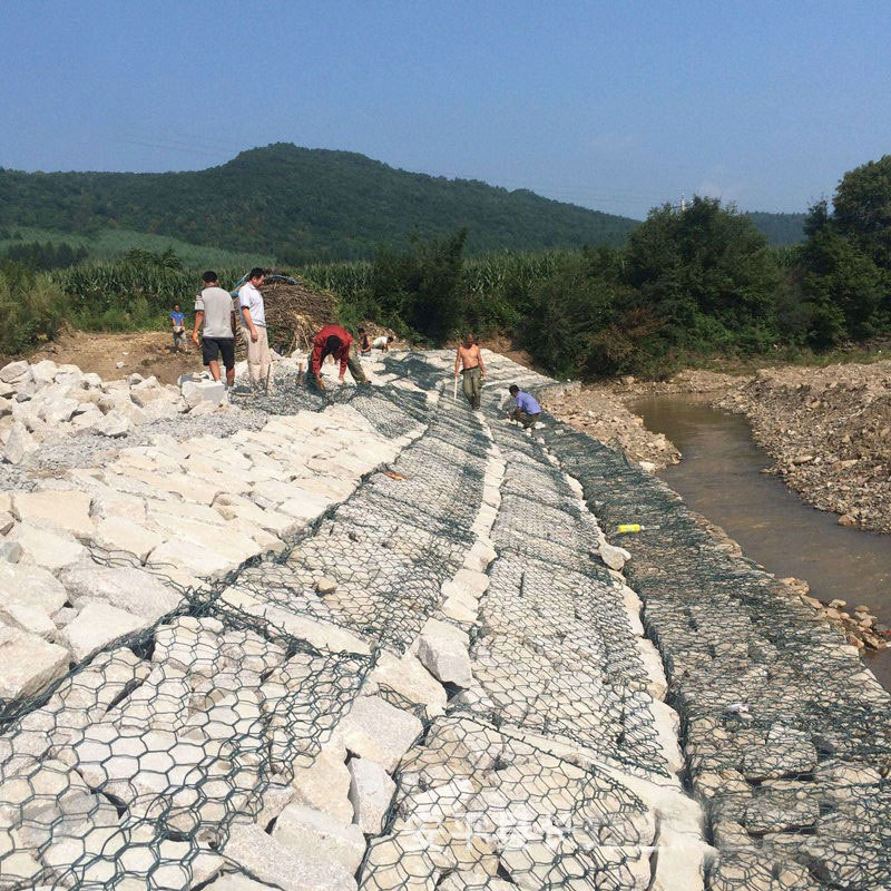 防汛石籠網(wǎng)在天然河道和各類人工開造的輸、排水渠道中,在常年的不同徑流量水流的沖刷下,兩側(cè)的岸坡都有不同程度的水土流失現(xiàn)象,嚴重沖刷會對岸坡結(jié)構(gòu)穩(wěn)定和整體性造成破壞。而防汛石籠網(wǎng)結(jié)構(gòu)是柔韌性防護結(jié)構(gòu),能夠適應各類河道邊坡防護條件,同時,還兼具一定的景觀效果。
