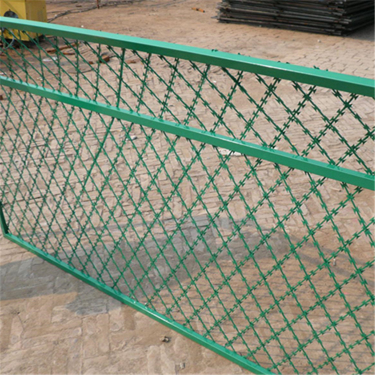 刀片刺網(wǎng)—護欄網(wǎng)用途:世界各國已將刀片刺網(wǎng)廣泛用于軍事重地、監(jiān)獄、政府機關(guān)、銀行;生活小區(qū)圍墻、私人住宅、別墅的圍墻、門窗、高速公路、鐵路護欄及邊境線等防護保安。
