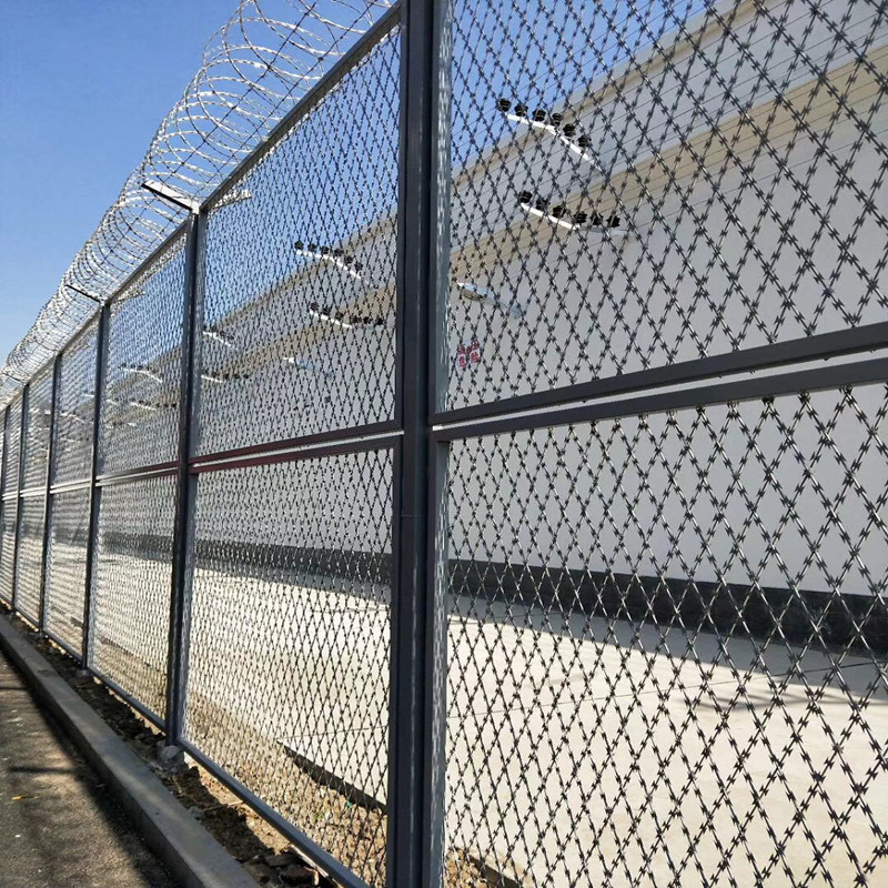 其實不管是焊接鐵絲網片還是刀刺網片都是監獄隔離網防護圍墻。